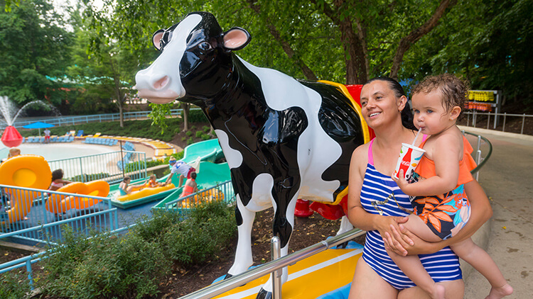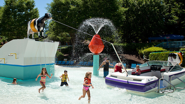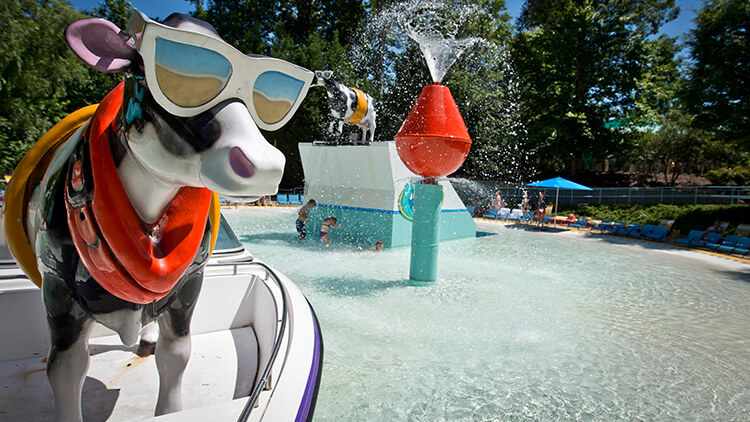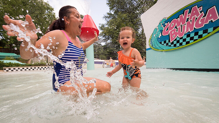 Parents and children can also explore a scaled-down water slide together. Just grab a double tube and slide into a three-foot-deep splash pool.